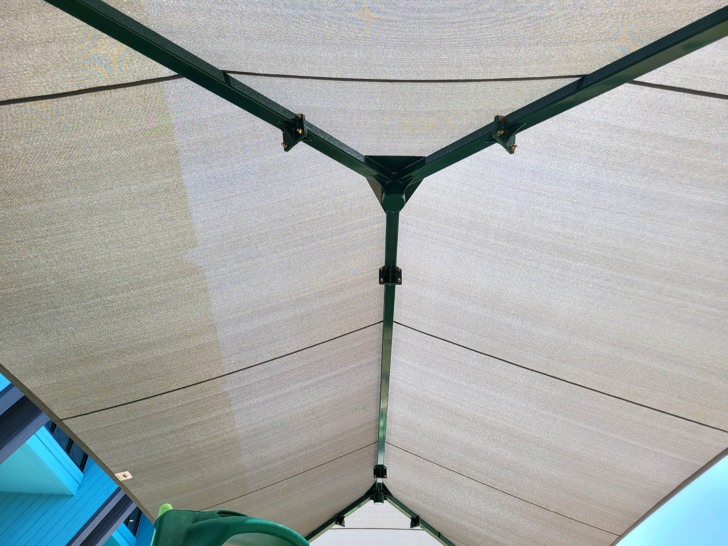 - Fabric tensioning and ponding prevention are part of every design. Improperly tensioned fabric sags, holds water, and fails early. We tension our systems correctly from the start and pitch fabric where needed so water runs off rather than pooling.